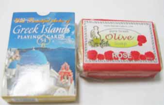 サントリーニの写真トランプとオリーブオイル石鹸。